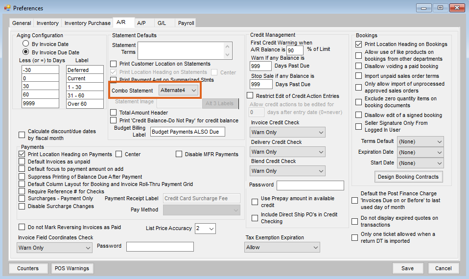 - Navigate to the A/R tab at Accounting / Setup / Preferences.