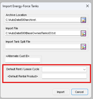 - <Default Rental Product> – Needs to be populated by the default values that can be set upon the import of a tank file.