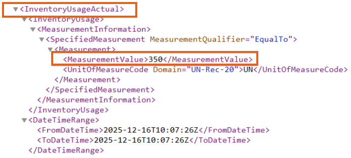The InventoryActualUsage section shows the Amount on Hand quantity of the Product(s).