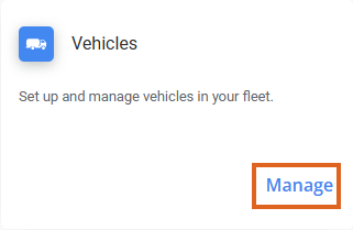 On the Maintenance page in SKY Energy, choose Manage on the Vehicles card to view fleet vehicles for the company.