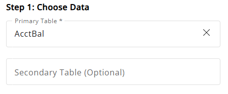 Select the Primary Table from the drop-down. Optionally, choose a Secondary Table from the drop-down list that populates when the Primary Table is selected.