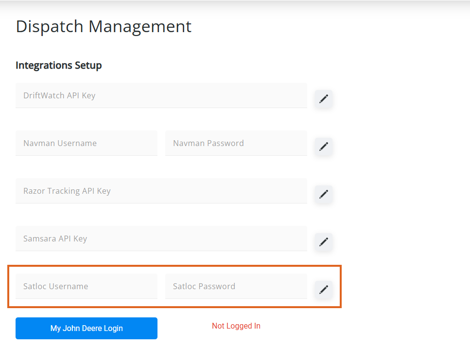 Note: Satlock Username and Password will need setup as a Vendor user within the Satloc Cloud prior to establishing a connection.