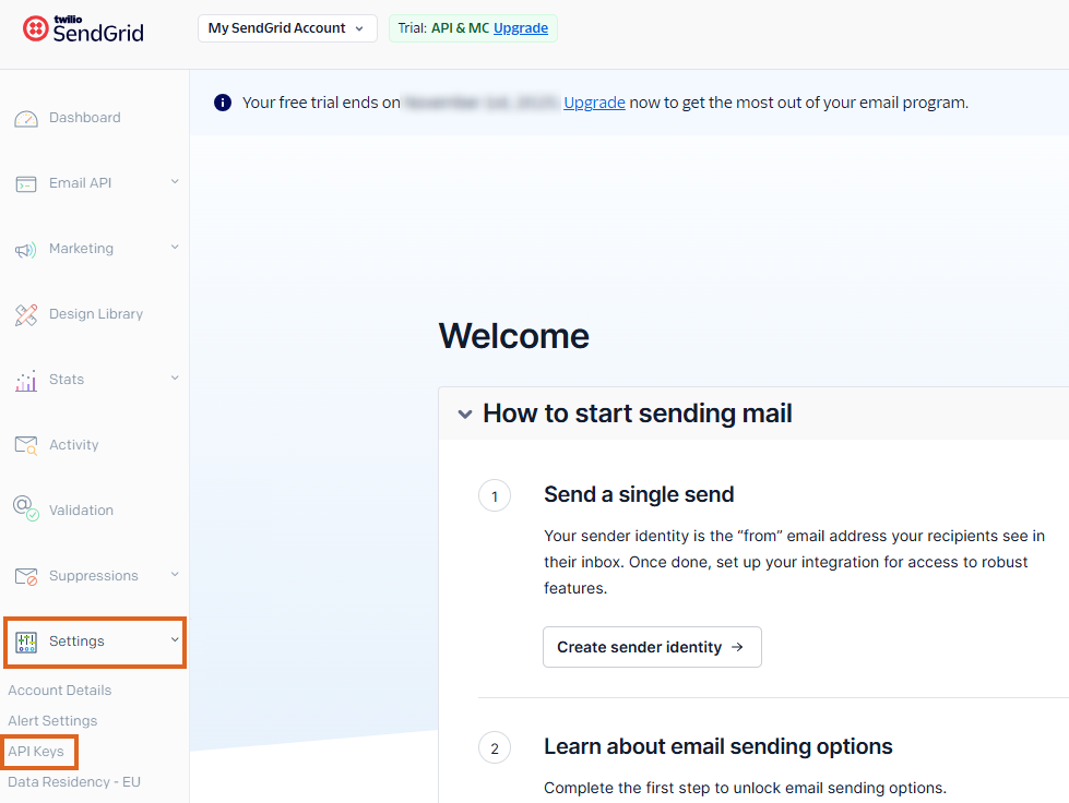Note: An email will be sent from SendGrid to the email address used here to verify the account.