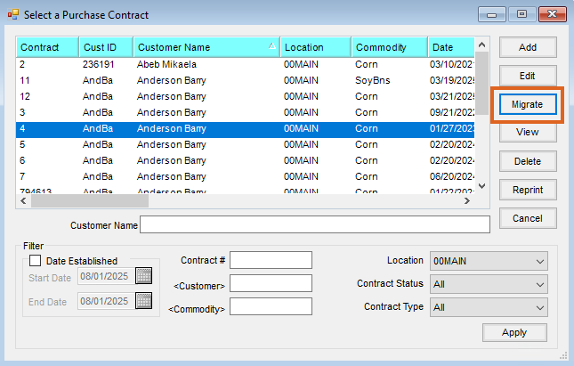 - have the same Customer and Commodity as the Purchase Contract being migrated;
