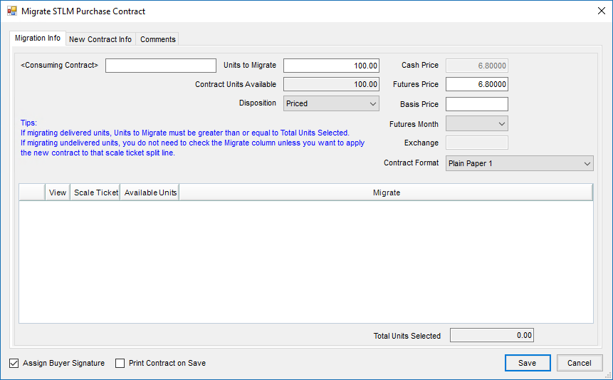 - Enter the quantity in Contract Units to Migrate.