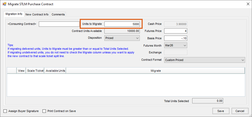 - On the Migration Info tab, enter the Units to Migrate.