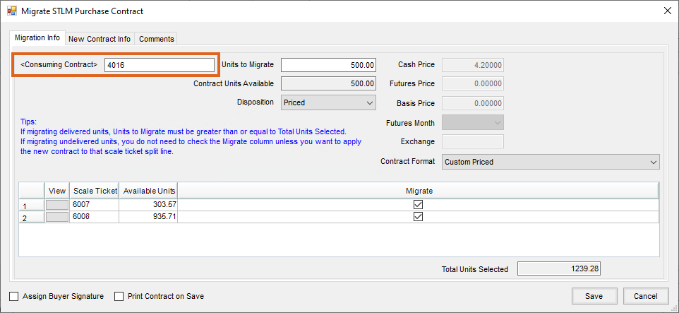 - Enter the Units to Migrate and check Migrate next to the delivered units on the Migration Info tab, then select Save.