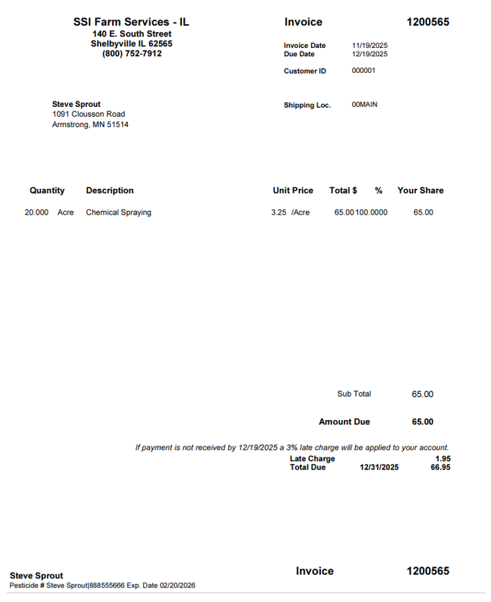 A split Invoice printout normally includes a This Invoice is Shared With section that lists the Customers in the split.
